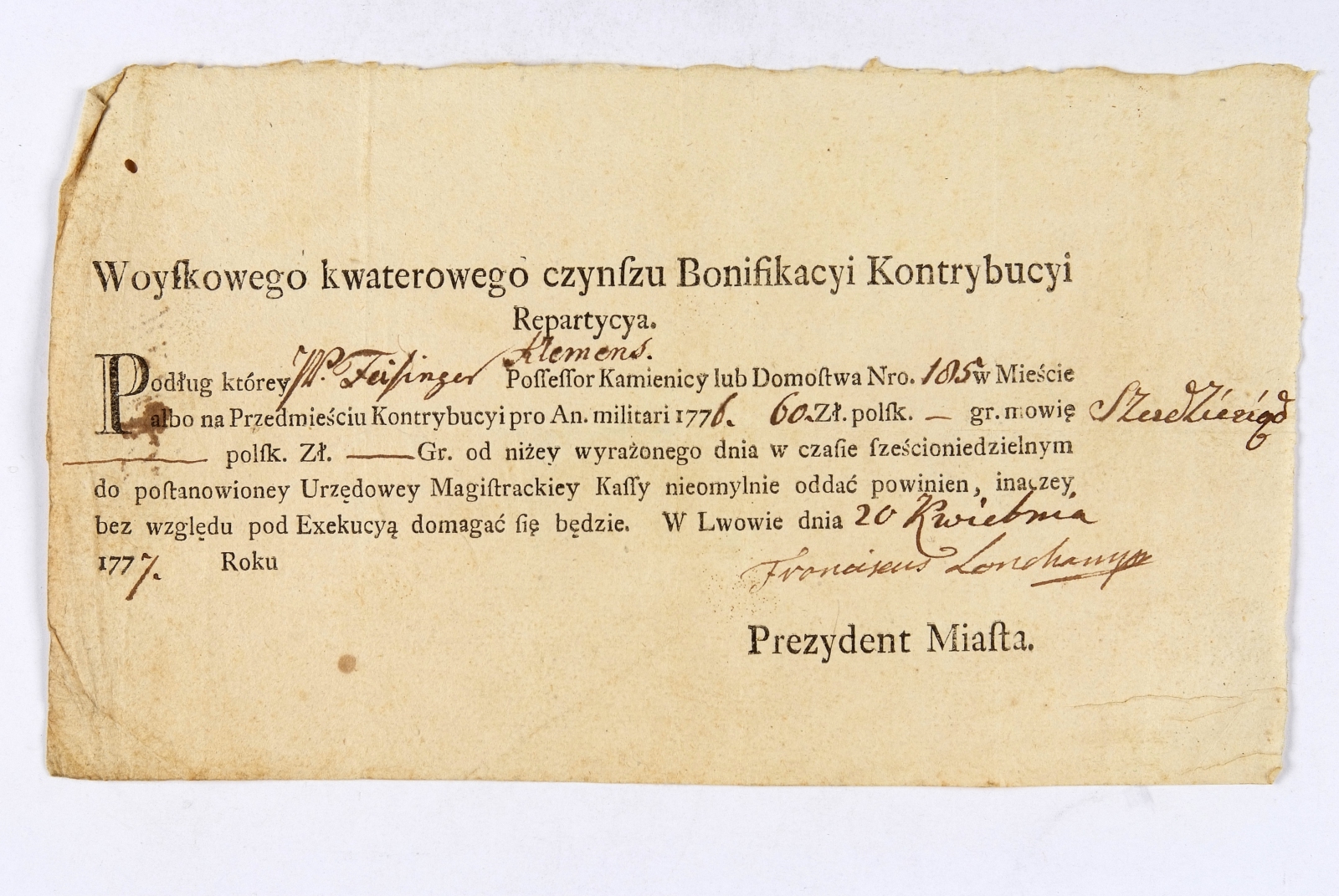 Pierwszy rozbiór Polski nie zmienił jego sytuacji życiowej. Jako prezydent w parę lat później witał przybywającego do Lwowa cesarza austrjackiego Józefa II i gościł go w swe posiadłości zwanej Lonszanówką.
